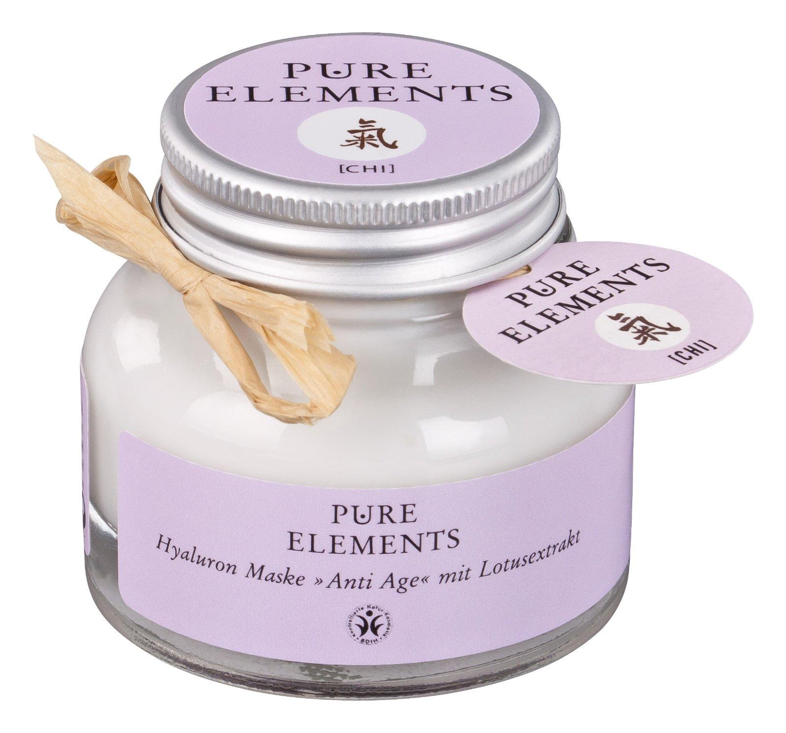 Prírodná maska luxusnej triedy z radu bio kozmetiky Pure Elements obohatená výťažkom z Lotosu, avokádovým a mandľovým olejom, bambuckým maslom, Vitamínom E a troma typmi hyalurónovej kyseliny je vhodná pre náročnú pleť. Bez umelých konzervantov.