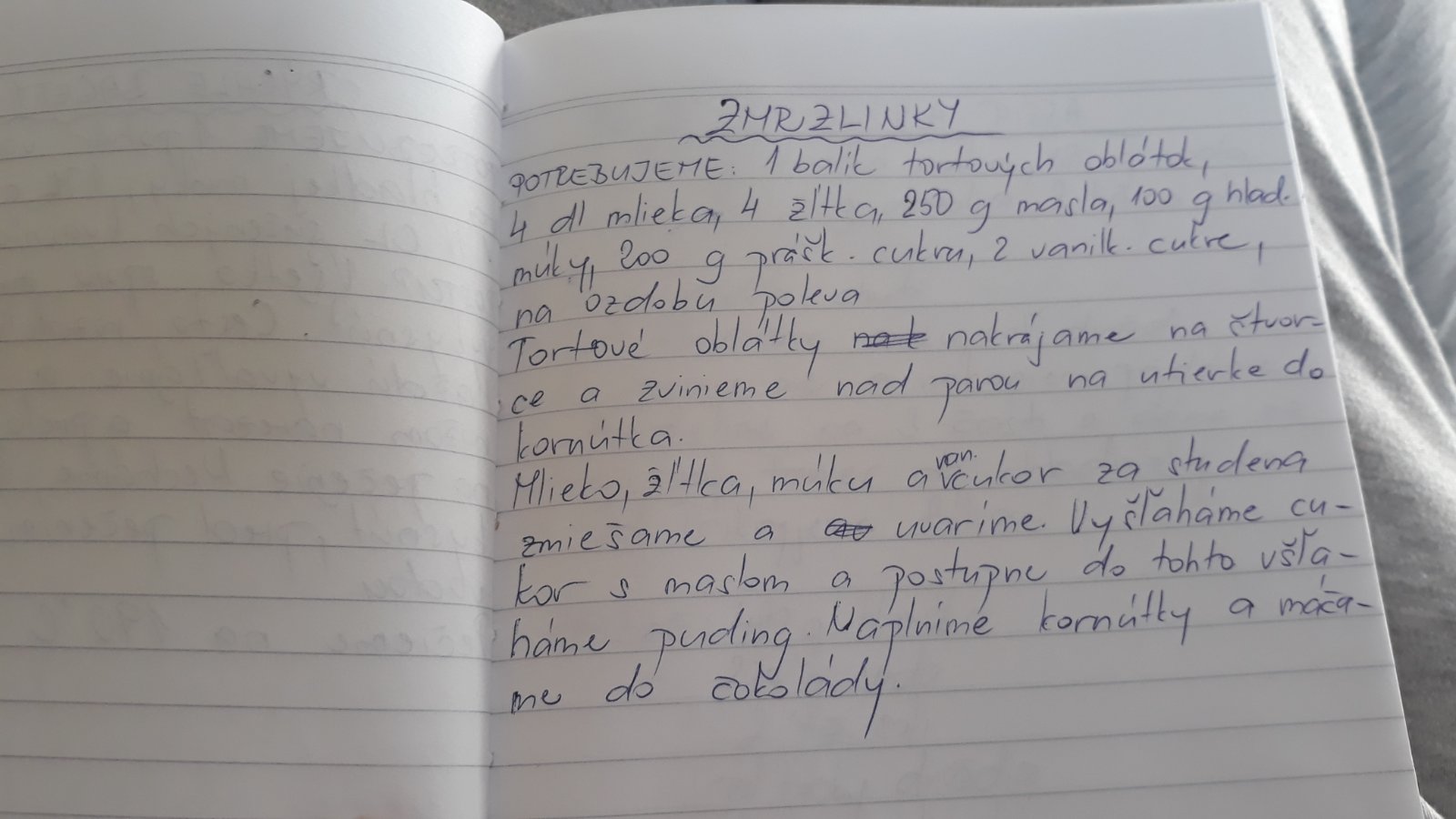Krem: moze byt lubovolný. Ja som upalila 300g cukru, pomaly pridala mlieko, aby sa mi nespravili hrudy karamelu. Celkovo som pouzila asi 4dcl mlieka, 1 práškovy karamelovy puding - z toho som aj s tym cukrom uvarila puding. Po vychladnuti som prislahala 250g masla. Kornutky som plnila len mikrotenovym sackom s dierkou. Preto niesu pekné.