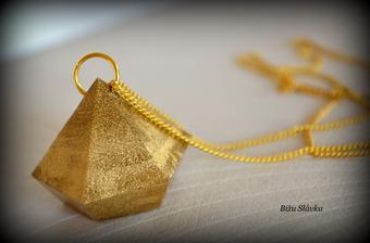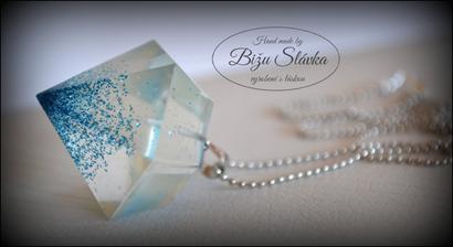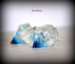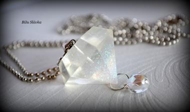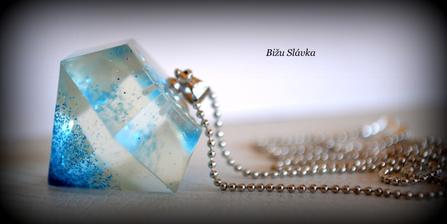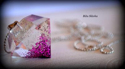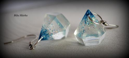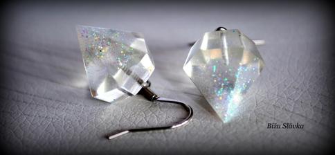 Šperky zo živice v tvare diamantov s rôznymi trblietkami. Autorská tvorba.