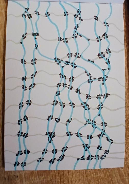 Ruka sa pohybuje bez tlaku na výsledok. Čiary sa opakujú, jemne vlnia, ukladajú sa do rytmu, ktorý upokojuje nervový systém.Má v sebe zvláštnu jednoduchosť. Čím menej sa snažíte, tým viac sa uvoľňuje napätie, ktoré si bežne ani neuvedomujete.