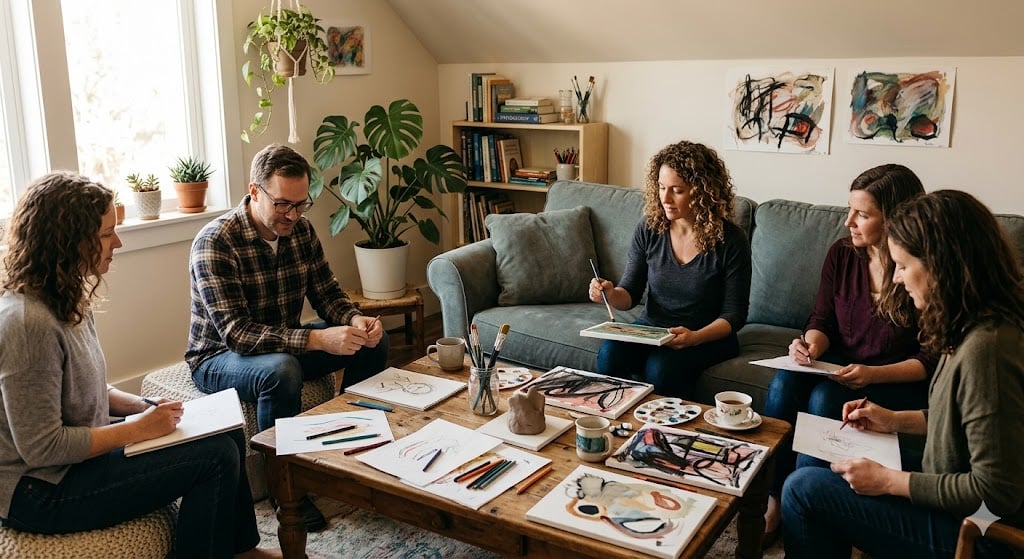 🧠 Senzimotorická práca s umeleckým materiálom stimuluje neuroplasticitu a pomáha regulovať bludný nerv, čo je kľúčom k zotaveniu z vyhorenia. Dotyk štetca o plátno alebo tvarovanie hliny vysiela do mozgu signály o bezpečí.