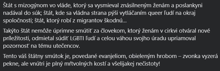 Zuzana Čaputová aj Martina Šimkovičová včera verejne vyjadrili ľútosť nad odchodom pápeža Františka zhruba rovnakými slovami. A teraz sa skúste pozrieť obom ženám do komentárov ich voličov a úprimne mi povedzte, ktorí z nich Vám vychádzajú ako tí, čo tu šíria číru nenávisť. https://www.facebook.com/permalink.php?story_fb...