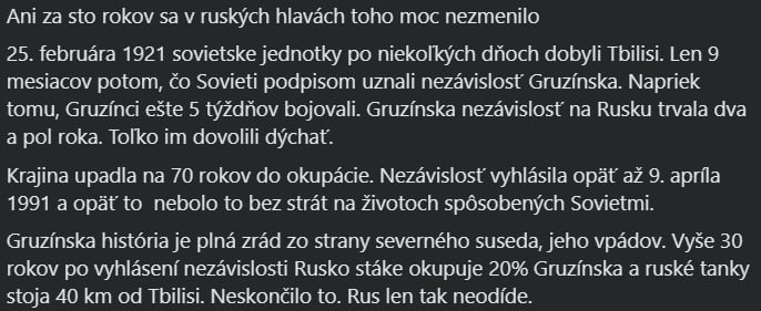 Nemusíš sa mat dobre, stačí keď sa ma tvoj sused zle. Toto je ich heslo celych sto rokov. Keď zistili, že sa nikdy nebudú mat tak dobre, ako ľudia v civilizovanej Európe, začali nenávidieť a škodiť. Vymysleli si bajky o širokej ruskej duši aby mohli slopaťˇ a nariekať. A potom sa ľutovať. https://www.facebook.com/nikita.slovak/posts/pf...