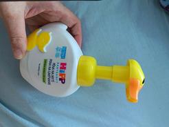 Opäť príjemná vôňa, ktorú poznáme od Hipp výrobkov. Nie je silná, je akurát. Obal v pohode sedí v ruke, aj keď je mokrý od vody a zároveň má milého tuleníka, ktorý zaujme deti. Konzistencia je hustejšia, stačí málo (tým pádom balenie dlhšie vydrží) ale treba poriadne v rukách rozpeniť s vodou.