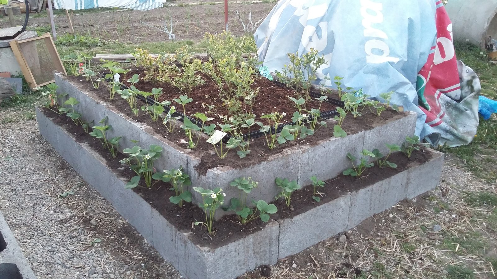 my mame vyvyseny zahon s cucoriedkami v raseline a dookola sme podavali podobne tvarnice a zasadili jahody.