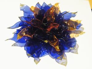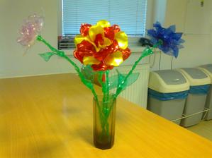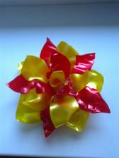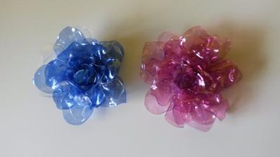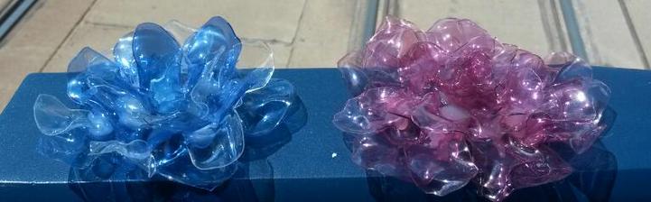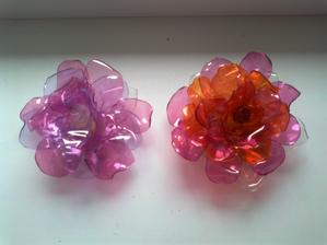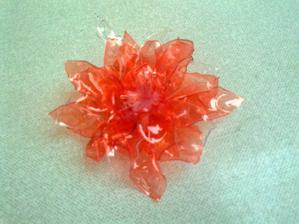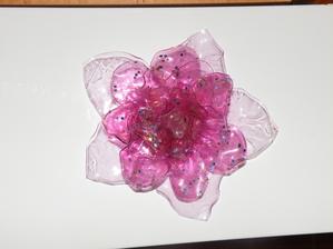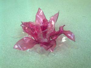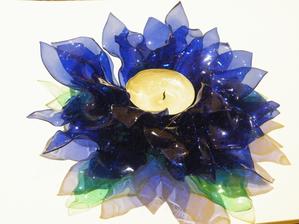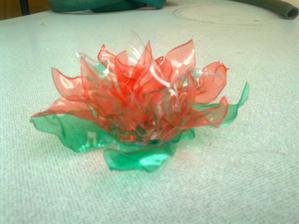 jednoduché z umelej flaše som vystrihla lupienky špicaté alebo okrúhle. nad plamienkom som ich ohla a aj dno z flaše. potom som do dna nalepovala lupienky tavnov pištolou