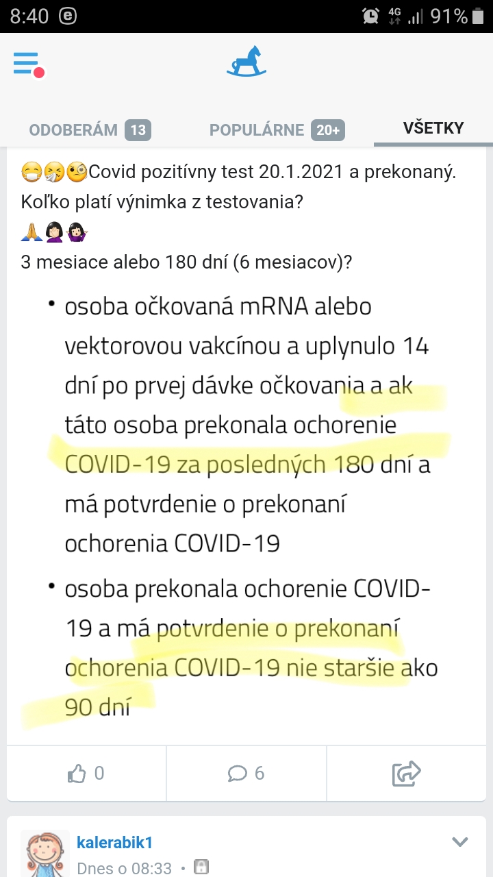 Dievčatá platí keď ste po prekonani kovidu, tak na testy sa nejde 180 dní?