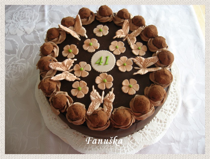 @acverenkarova je to kakaový korpus,plněný pařížským krémem a politý ganache.Kuličky jsoun také z ganache ,které po ztuhnutí tvaruji a obaluji v kakau.Jsou famózní,jen se v puse rozplynou.Ganache asi znáš,pokud ne,napiš.