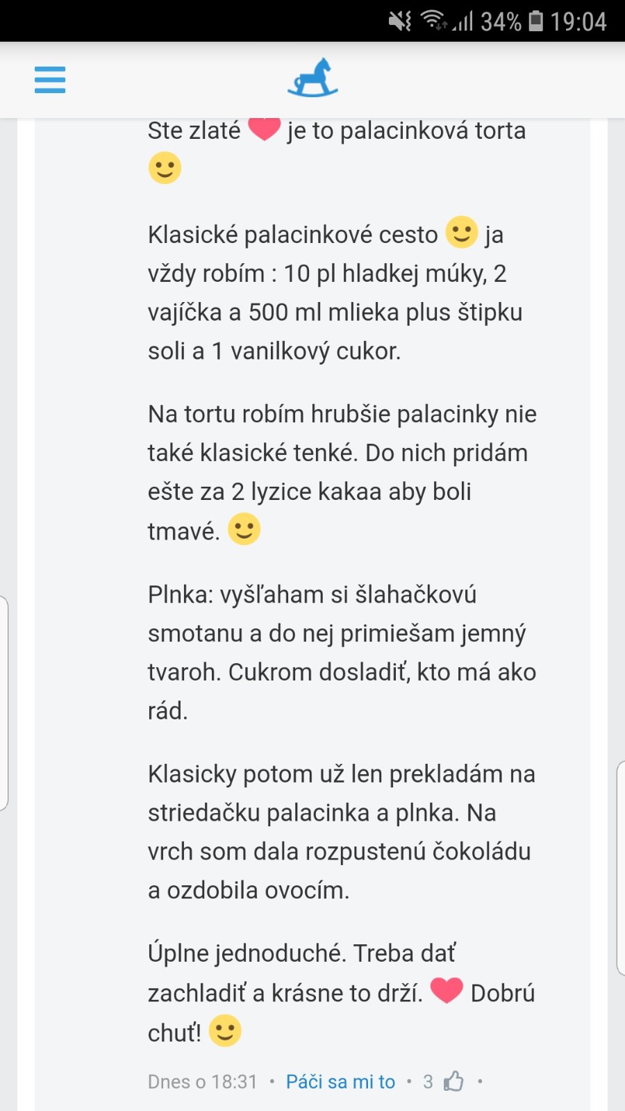 Ahojky dievčatá,robil už niekto palacinkovu tortu? Ďakujem.