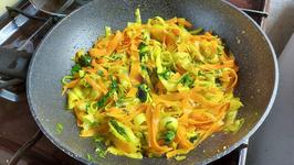 Cuketa, mrkva, pór, špenát, ligurček, petržlen, pažítka, maslo, soľ. Jednoducho, stručne, do 10 minút na tanieri