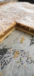 Je výborný, krehký ako pavučinka (Cesto som vaľkala priamo na papieri na pečenie, aby sa mi s ním lepšie robilo. Papier som potom s cestom preložila na plech. Vrchné cesto takisto, potom už len preklopiť z papiera na jablká. Jablká som použila zavárané - 2 x 7 dcl fľaše)