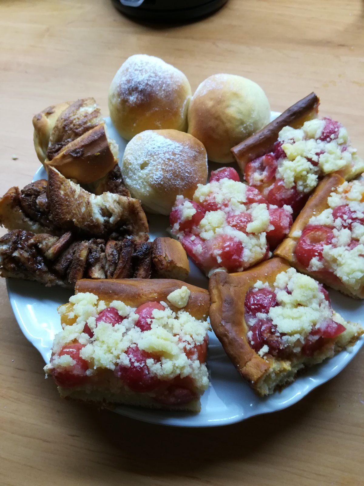 Kysnuté dobroty na sobotu:- Čerešňový s posýpkou- Buchtičky plnené nutelou a jahodami- Nutelový závin