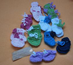 Len tak náhodou som chcela vyskúšať vytvoriť papučky také mini. Už dlhšie na facebooku v spolupráci s inými dievčatami bezi akcia na novorodenecké oddelenia a na kardio centrá. Potom som naďabila na českých stránkach ako češky tvorili čiapočky, papučky a iné pre predčasne narodené detičky. Veľmi ma táto akcia chytila za srdce a rozhodla som sa podporit to na slovensku. Po komunikácii s pani z občianskeho združenia sme na facebooku vytvorili zbierku pre predčasne narodené detičky. Táto akcia trvá do 31.10.2012. Všetky vecičky ktoré pridu budú označené štitkom s menom a email adresou výrobcu. Následne budú všetky odovzdané koordinátorke OZ v Bratislave dňa 17.11.2012 kedy je medzinárodný deň predčasne narodených detičiek. Verim že táto akcia bude mať velký úspech anebude posledná. 🙂