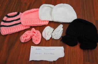 Dievčatá chcela som vás poprosiť niektoré čiapočky čo prišli sú dosť na pevno hačkované a pôsobia potom tvrdo. Keby ste menej uťahovali alebo skuste použiť menší háčik. 🙂 Inak všetky sú krásne a velmi velmi dakujem 🙂