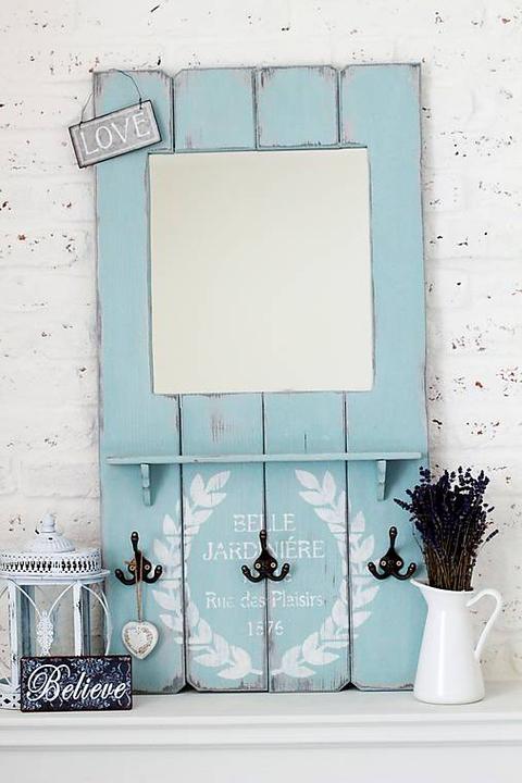 Zrkadlá/vešiaky atď. sú vyrábané z nového dreva /smrek alebo borovica/...rezané, brúsené a skladané do želaných rozmerov sú v malej súkromnej skoro rozprávkovej stolárskej dielničke… potom hotové putujú do môjho atelieriku… prvý povinný krok je ošetrenie moridlom a následne sú nanášané farby v niekoľkých rôznofarebných vrstvách aby nám pri brúsení vznikla autentická patina…používam výlučne kvalitné značkové farby Chalk paint od Anny Sloan…potom prichádza zábavná časť dekorovanie,písanie, brúsenie🙂) Keď je všetko v poriadku, zafixujeme celé zrkadlo/vešiak špeciálnym voskom, ktorý leštíme až kým nevznikne úžasný zamatový lesk a zároveň vzniká ochranná vrstva, vďaka ktorej môžeme náš výtvor umývať jemne navlhčenou handričkou…