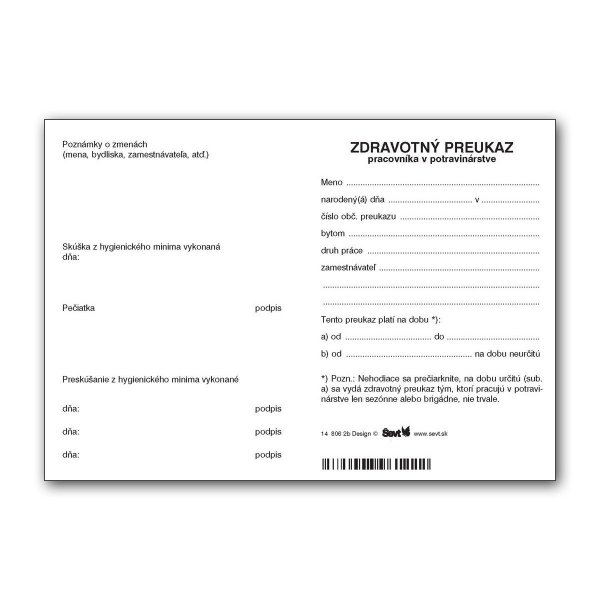 Zdravotný preukaz v potravinarstve - ano je to štandardna kartička ktorú vystavuje lekár. Skúste povedať že potrebuje potravinarsky preukaz, možno to pozná pod týmto názvom.