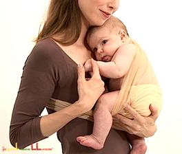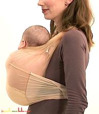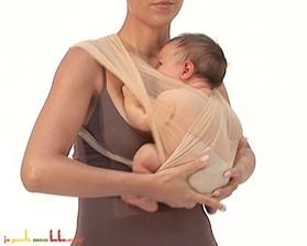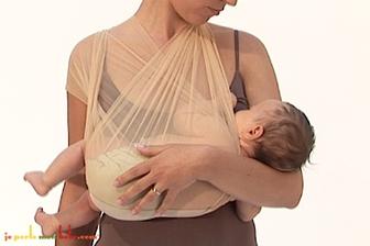 nosenie dieťatka dostatočne blízko tela a vo výške, keď môžete dieťatko pobozkať na čelo