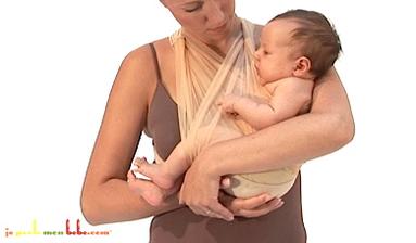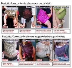 nožičky mierne od seba, nestláčajte ich k sebe: u novorodencov neodchyľujte nožičky nasilu od seba, rešpektujte ich odchýlené postavenie; odchýlenie nožičiek závisí od veku dieťatka - pri menších deťoch v prvých mesiacoch je odchýlenie v šírke pliec dieťatka, neskôr sa nožičky odchýlia ešte viac a v prípade, že nosíte vo vertikálnej polohe vás môže staršie dieťatko obkolesiť nožičkami