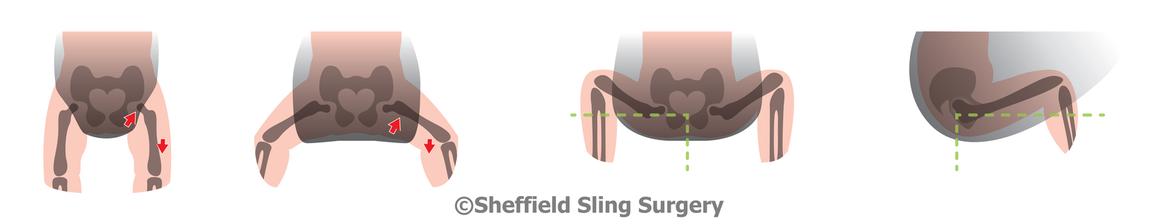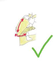 podsadený zadoček, čo je dosiahnuté mierne predsadenou panvou, pokrčenými nožičkami s kolienkami nad úroveň zadočka, čím je zaistený správny vývoj bedrových kĺbov od narodenia