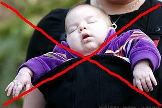 poloha dieťatka na bruchu či na chrbte smerom od vás je nežiaduca, nakoľko popiera všetky vyššie uvedené princípy a je pre dieťatko nebezpečná