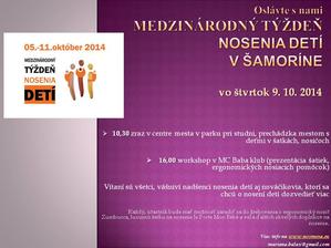 Všetkých rodičov ktorým je sympatické nosenie detí pozývam na Medzinárodný týždeň nosenia detí na Slovensku. Nájdi si svoje mesto a príď. Viac info na www.nosmesa.eu a na facebooku a v článku tu: https://www.modrykonik.sk/blog/cacika/article/tyzden-nosenia-2014-program-254aun/