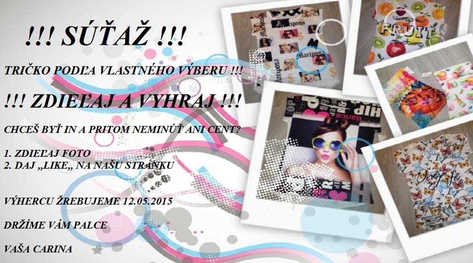 Choď na našu facebookovú stránku, daj like, zdieľaj a vyhraj tričko, aké si vyberieš!!! :)