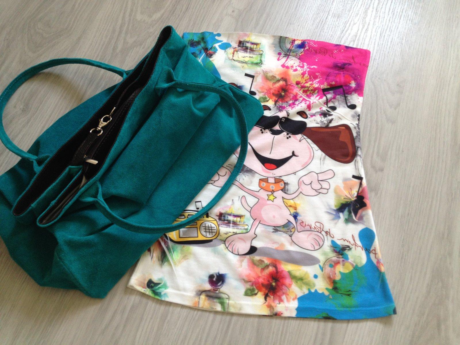 maxitaška z brúsenej kože, tyrkysovej farby, made in italy, €29 + top v cene