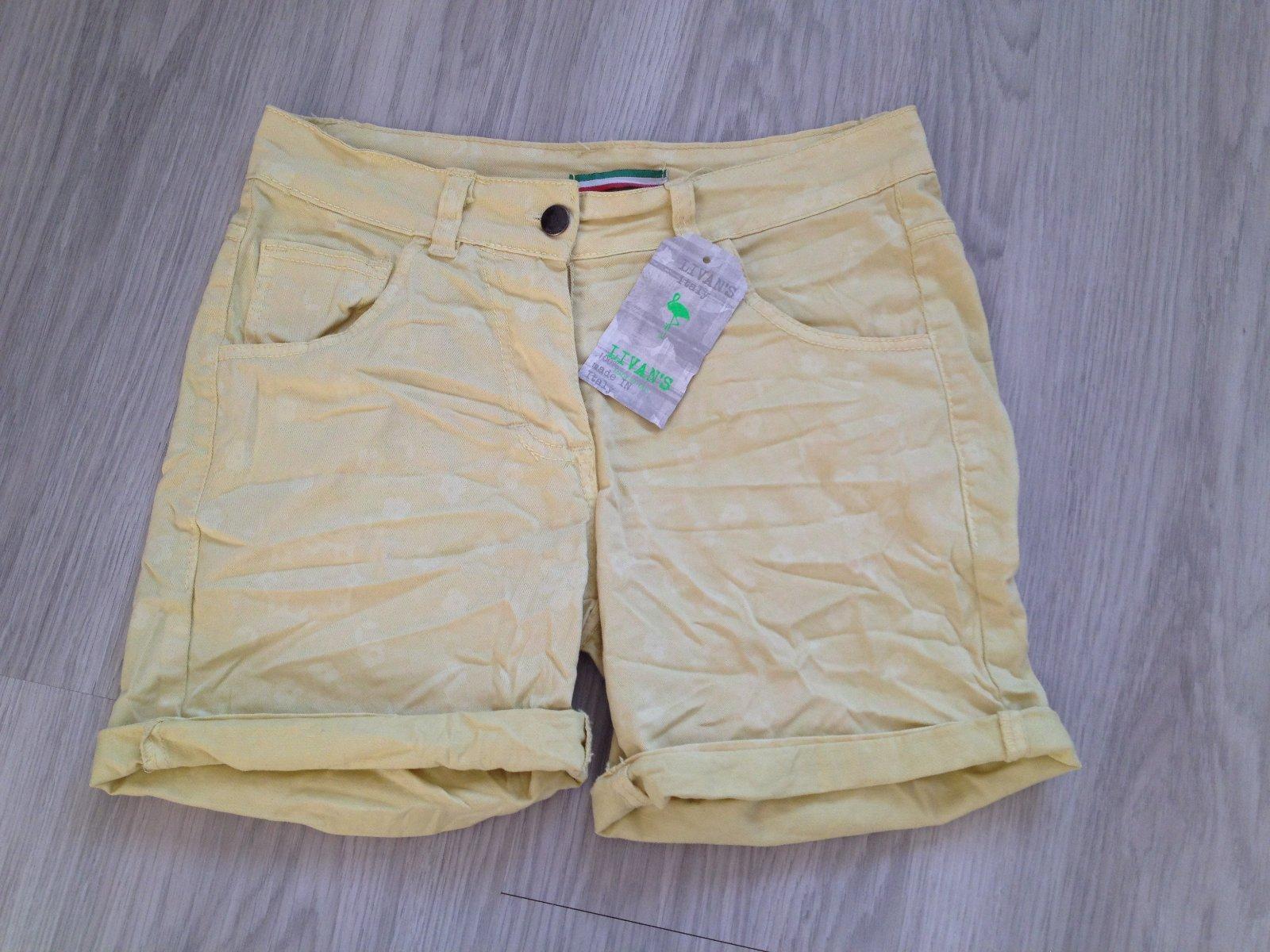 kraťasky, žltej farby, v skutočnosti je tá žltá jasnejšia, veľkosť S, cena €15