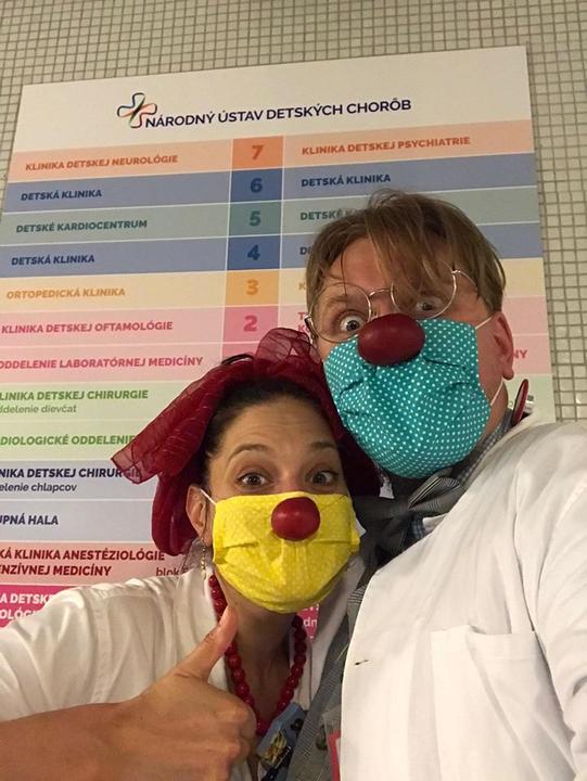 Aj v týchto dňoch pokračujeme v našom poslaní - prinášať smiech do nemocníc. Akceptujeme pri tom epidemiologické opatrenia - nosíme rúška, dodržiavame odstupy a prísna hygiena je u nás samozrejmosťou. Ak je v nemocnici zákaz návštev, o dobrú náladu sa postaráme pred vstupom do nemocnice (Prešov, Žilina).