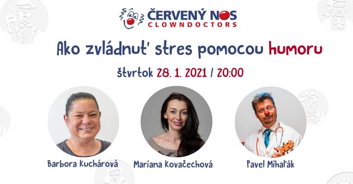 Už dnes večer o 20:00 Vám prinášame online diskusiu s odborníkmi na zaujímavú tému - ako dokáže humor podporiť našu psychiku a účinne uľaviť od stresu a úzkosti? Hosťami sú klinická psychologička Barbora Kuchárová a umelecký šéf Červeného nosa Pavel Mihaľák. Moderuje Mariana Kovačechová. Sleduje live na našej FB stránke: https://www.facebook.com/cervenynosclowndoctors
