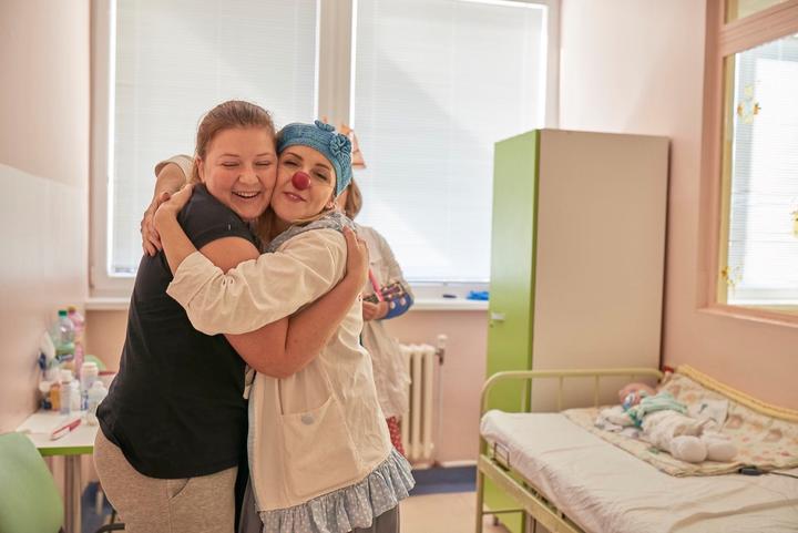 Je skoro päť hodín popoludní, keď sa s mojím klaunským kolegom doktorom Koalom vyplazím na tretie poschodie nemocnice, kde ležia malé deti. Otvoríme dvere do chodby, kde už stoja mamičky a preberajú si večeru. Niektoré sú samy, iné sú ovešané ratolesťami.