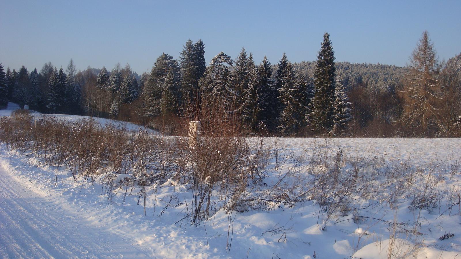 krásne zasnežené okolie pri chate