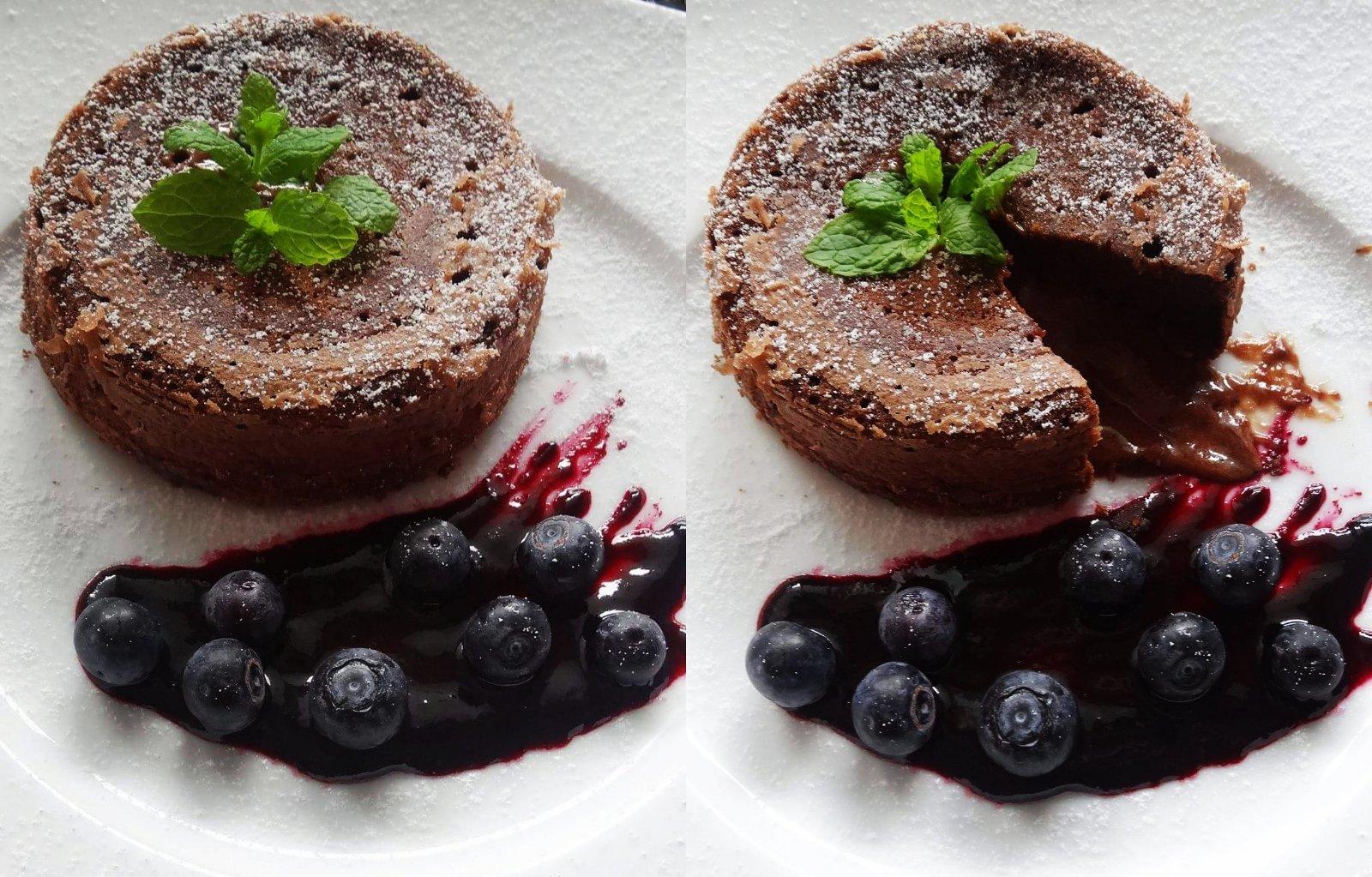 Čokoládovo-mätové suflé s čučoriedkovým coulis