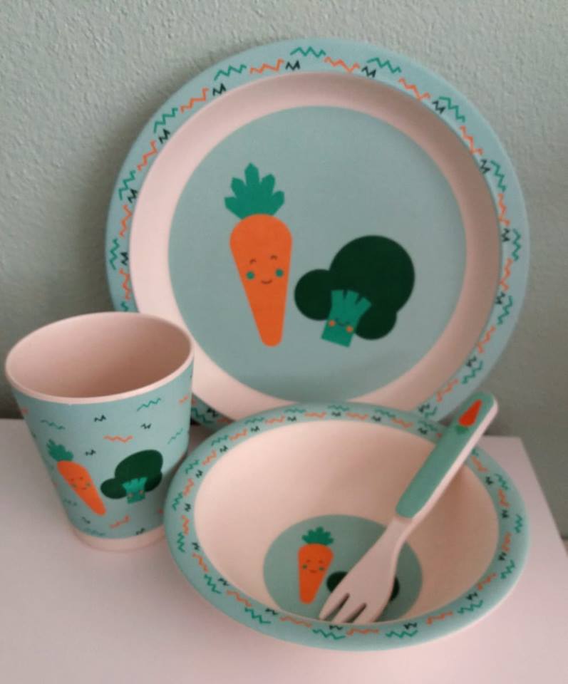 Veľký úspech mala u nás Babylove bambusová jedálenská sada, veľmi sa teším materiálu a náš najmladší zasa vzoru 🙂 Oku lahodiace farby a milá usmiata mrkvička s brokolicou 🙂 Čo dodať? U nás sa papá už iba z tejto sady 😀