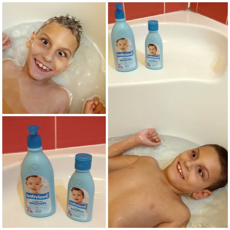 Večer sme sa vrhli na testovanie kozmetiky 🙂 Aj keď sprchový gélik a šampón sme už dôverne poznali, pretože ich kupujeme už dlhšie. Takže Babylove umývací gél 500ml obsahuje extrakt zo slezu a pantenolu, má veľmi príjemnú vôňu a dobre sa rozotiera. Oceňujeme pumpičku na 500ml baleni, čo nám uľahčuje aplikovanie. veľké balenie za výhodnú cenu 🙂 Babylove jemný šampón 250ml príjemná vôňa, super konzistencia a jemné penenie na detskych hlavičkách. Za nás super. No a po osprchovaní sme natreli Babylove telové mlieko pre veľmi citlivú pokožku 250ml. Musím sa priznať, že pre mňa to bolo trošku sklamanie. Zbožňujem, keď mliečka voňajú a tu mi tá vôňa chýbala. Mliečko je bez arómy. Ale dobre sa rozotieralo a krásne sa vsiaklo do pokožky.