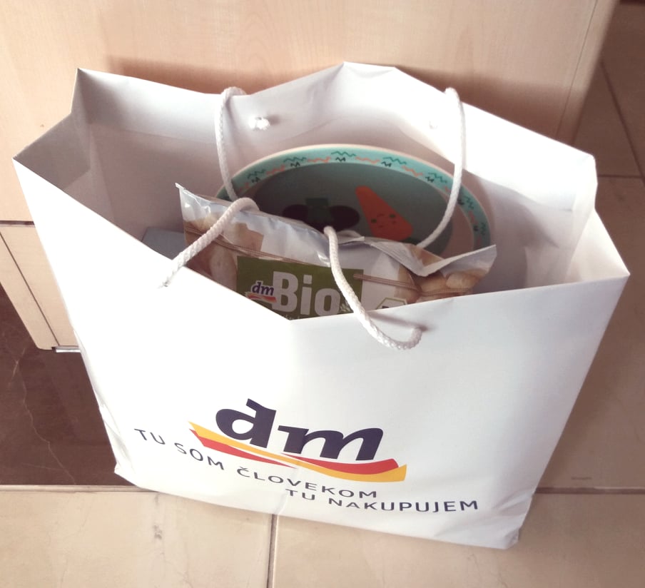 Čerešničkou na torte je Papierová maxi taška s logom dm 🙂 Tá sa v domácnosti zíde a je ešte aj krásna 🙂 Nezdá sa ale je veru dosť pevná.