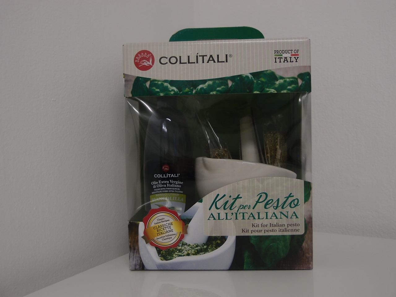 Kit Pesto obsahuje keramický mažiar, taliansky 100% extra panenský olivový olej, mix byliniek na janovské pesto, mix byliniek na sicílske pesto. Vychutnajte si pravé talianske pesto u Vás doma