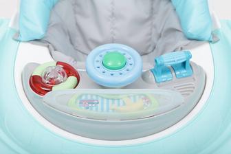 Nový námornícky dizajn. 4 kolieska otočné o 360 stupňov. Hrací zábavný pultík. Tri polohy nastavenia výšky sedadla. Mäkké polstrovanie sedáka. Dve farebné prevedenia.