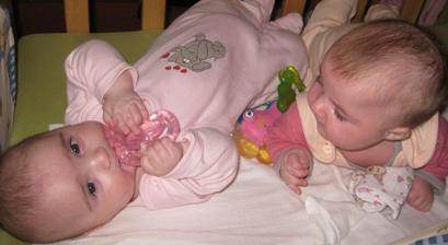 Narodili sme sa 20.10.2009 o 9:06 Alexia 45cm 2150g, o 9:07 Viktória 45cm 2220g.