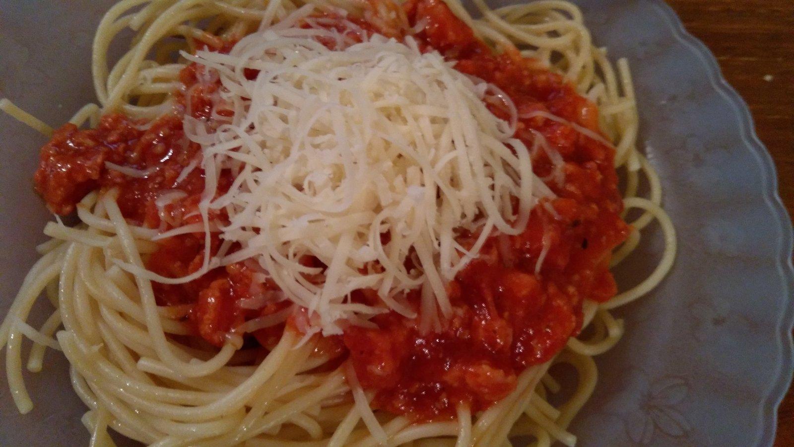 autor@niki010611 táto bola s mletým mäsom,ale bežne opražíme troška cesnak a zalejem polenymi rajčinami s konzervy/ alebo pasirovanymi rajčinami/ soľ ,za lyžičku cukru,bazalku.mozes dochutiť vegetou.my nedávame.