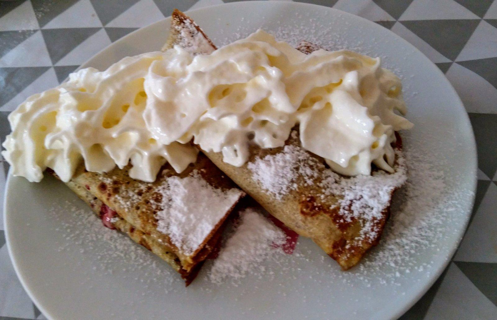 Ražne palacinky s ríbezľovym džemom a tvarohom.