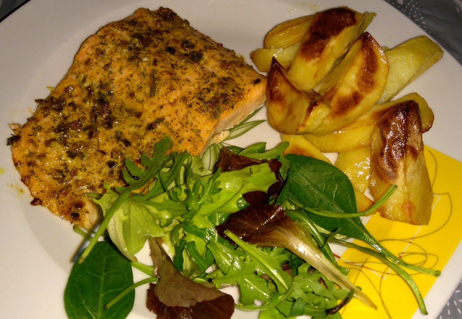Losos a zemiaky pečené v rúre