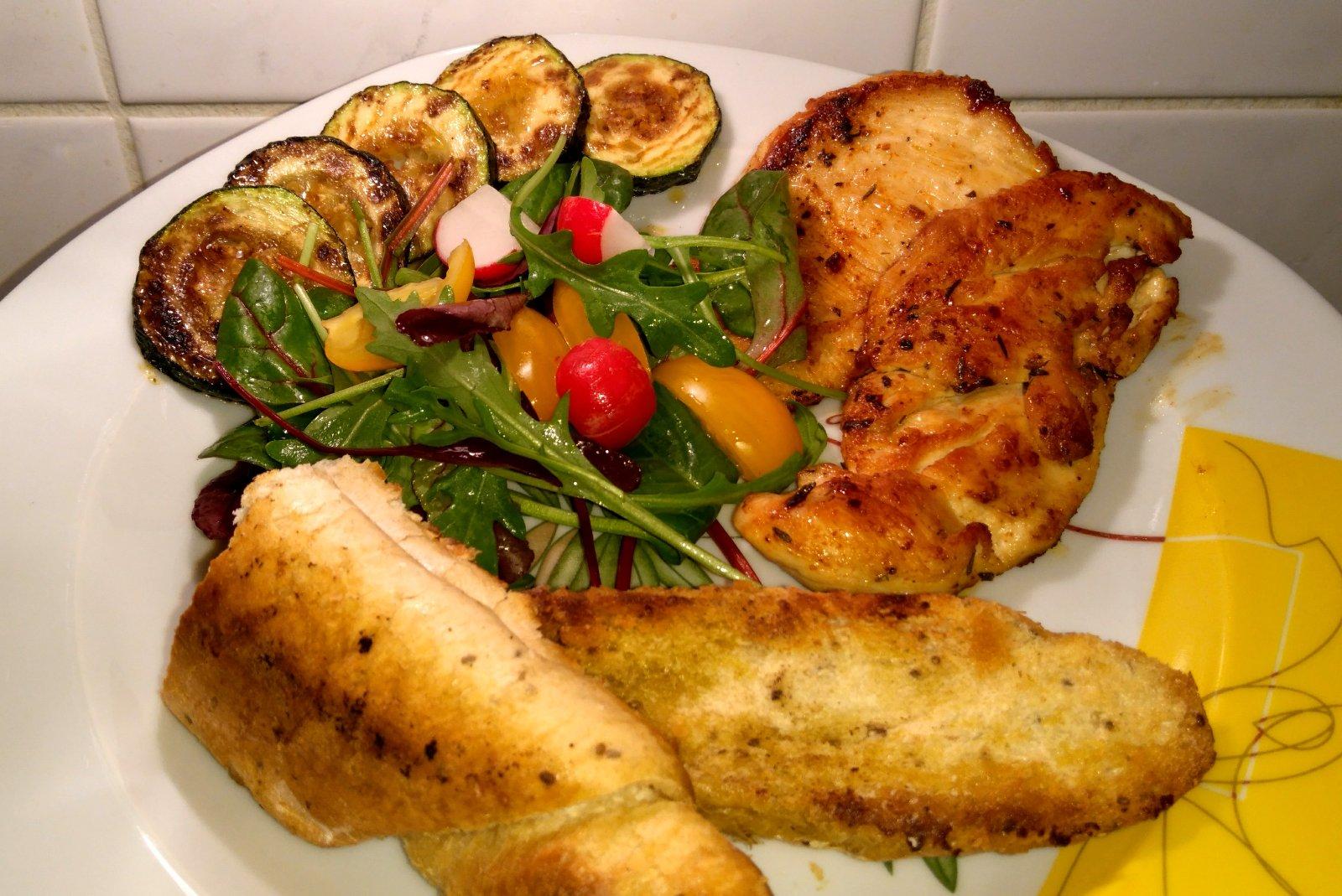Kuracie prsia, šalát, opečený rohlík 😉