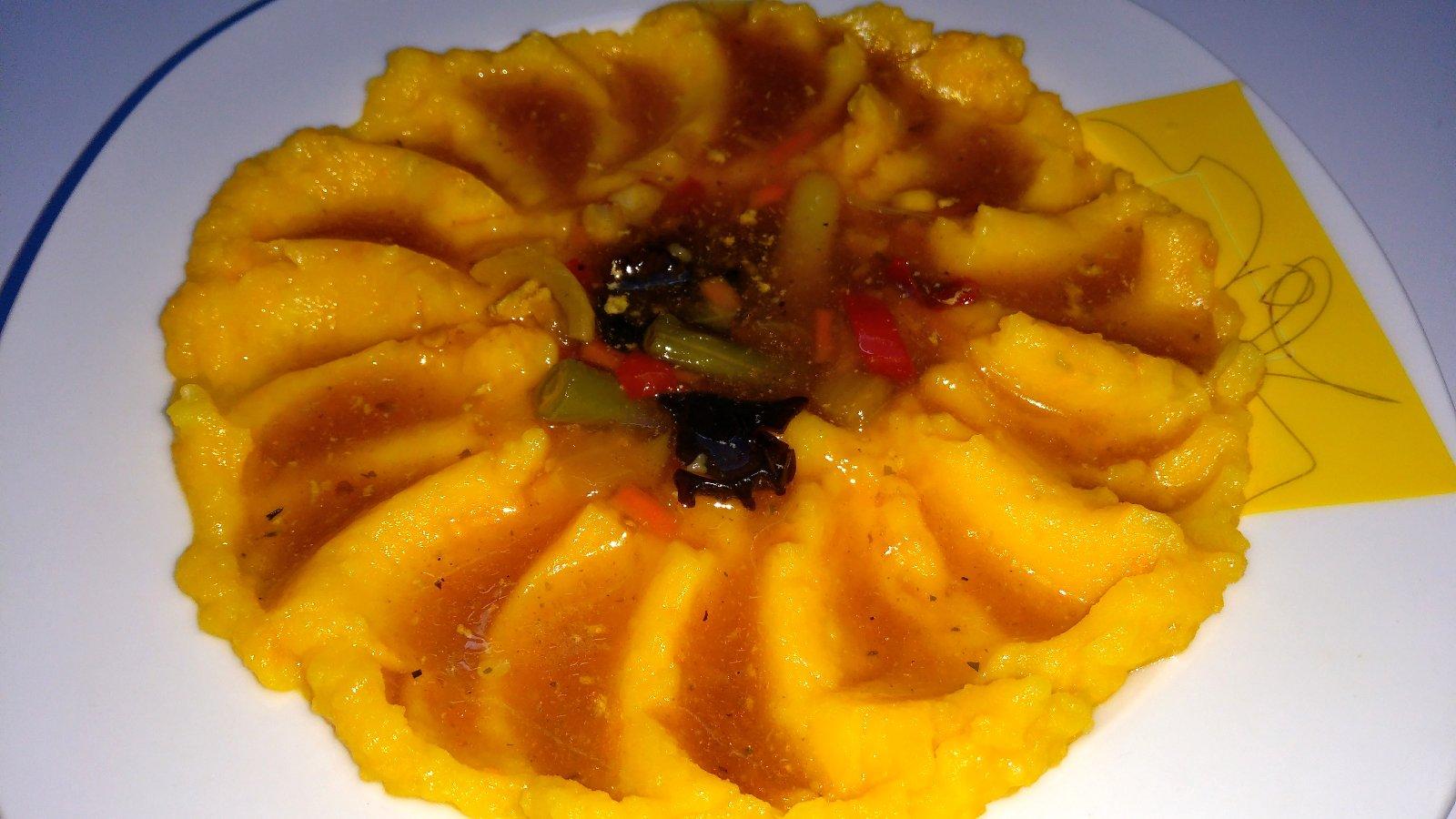 Batatovo zemiaková kaša a zelenina a čínsky spôsob