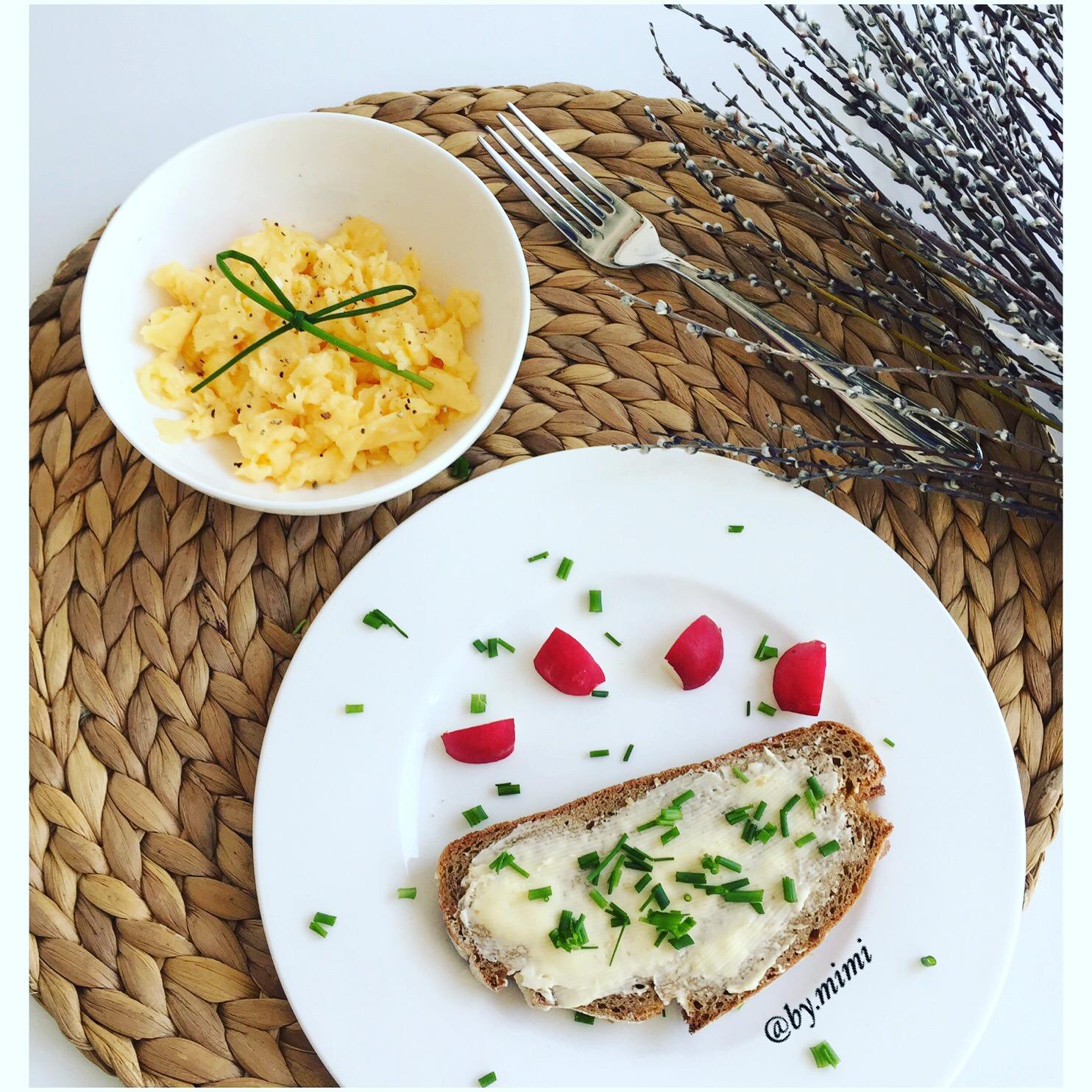 Raňajočky - domáci spaldovo rázny chlebík s masielkom a pažítkou a praženička s pažítkovou mašličkou https://www.instagram.com/p/BEaxxNkw32b/