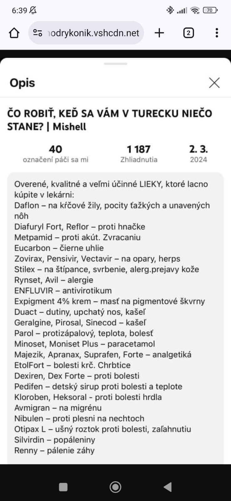 Ahojte..nedávno tu bol na ploche zoznam s liekmi,ktoré sa oplatia kúpiť v Turecku a na ake choroby sú.necvakol to niekto pls?Dik🌸🍀
