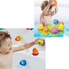 Mama slúži ako kropítko, chobotničky možno prisať na stenu vane a striekajú vodu. Každá chobotnička má inú farbu, iný úsmev a iné číslo, tak aby mohli pri hre rozvíjať znalosti vášho dieťaťa. Roztomilá hračka do vody pre vaše najmenšie, ktorá im spr