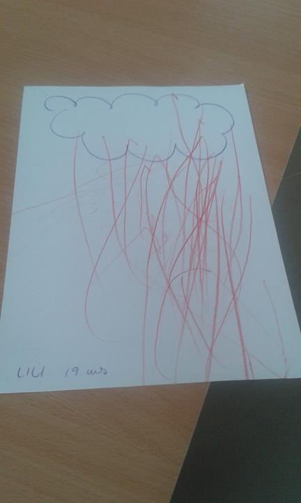 Dnes som lili nakreslila oblacik apoprosila ju aby nakreslila ako z neho prsi/snezi🙂 a potom este nakreslila kuba🙂) po dlllhej dobe sme len kreslili...🙂)