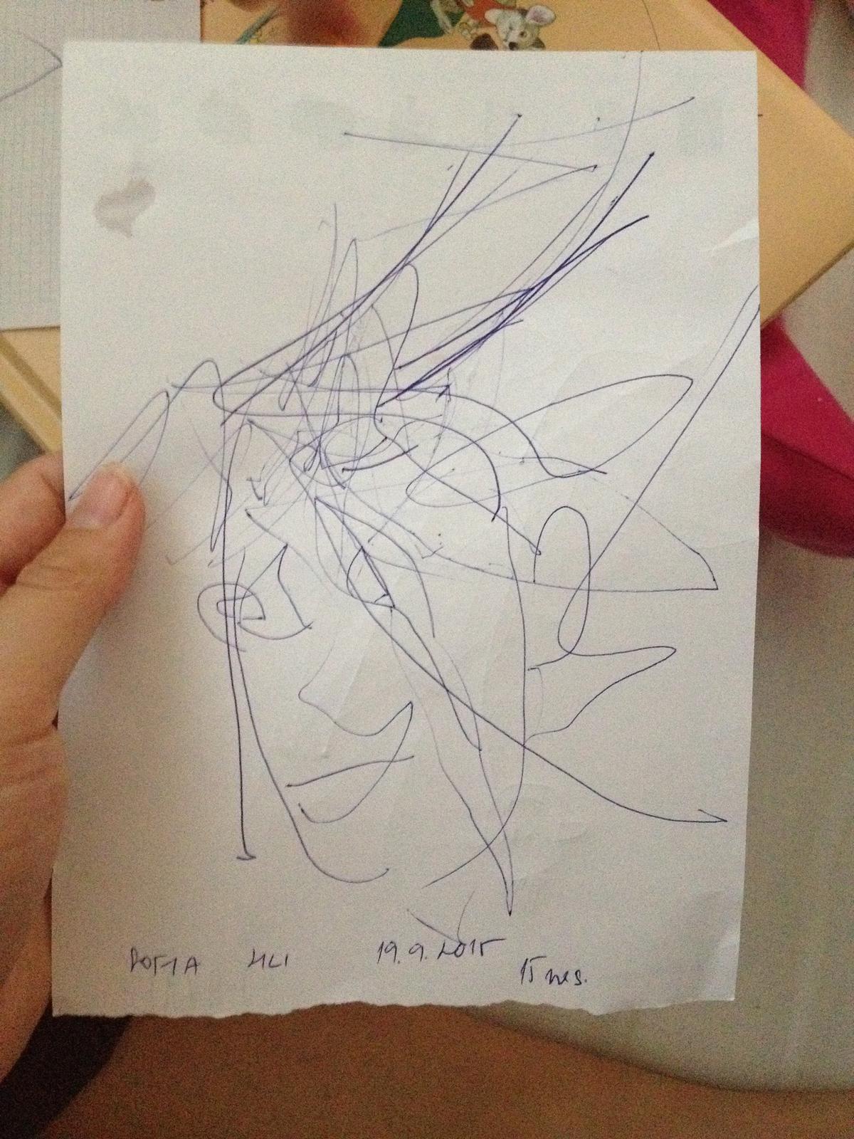 V nemocke sme si krátili cas hrami🙂 a Lili miluje kreslit tak som jej dala kúsok papiera a pero... Sedela oproti mne a kreslila... Toto som videla ja ... (Ona to kreslila z opačnej strany -nie vedome) dufam ze ma chápete🙂)) ❤️❤️