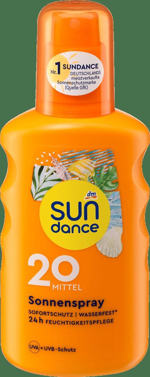 SUNDANCE sprej na opaľovanie OF 20 poskytuje okamžitú ochranu pred slnečným žiarením. Vodoodolné* zloženie sa rýchlo vstrebáva a nemastí. Vaša pokožka je účinne chránená pred slnečným žiarením. Ošetrujúce zloženie s extraktom zo zeleného čaju, vitamínom E, s glycerínom a pantenolom pokožku po opaľovaní upokojuje a hydratuje po dobu 24 hodín.